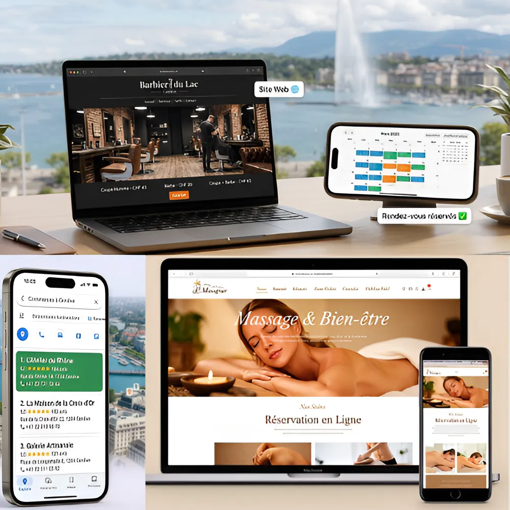 Oui. Nous configurons tout pour que Google comprenne parfaitement votre activité, votre localisation (Genève/Suisse romande) et vos services. La vitesse de classement dépend de la concurrence, de vos avis Google et du temps. Nous ajoutons du contenu mensuel (blog) pour accélérer les résultats.